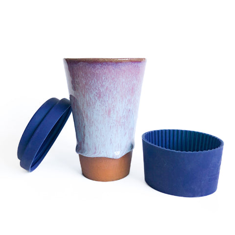Cette tasse est fabriquée à la main, munie d'un couvercle et d'un manchon en silicon de belle qualité pour plus de confort lors de vos déplacements. Elle est disponible en plusieurs couleurs, avec ou sans motif. Deux tailles s'offrent à vous et peuvent s'utiliser avec un infuseur tel que celui-ci.