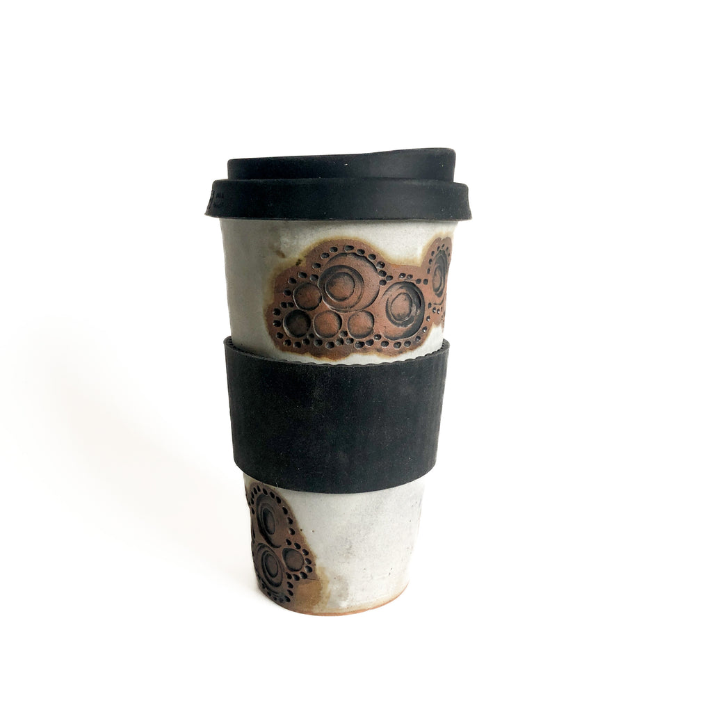 Cette tasse est fabriquée à la main, munie d'un couvercle et d'un manchon en silicon de belle qualité pour plus de confort lors de vos déplacements. Elle est disponible en plusieurs couleurs, avec ou sans motif. Deux tailles s'offrent à vous et peuvent s'utiliser avec un infuseur tel que celui-ci.